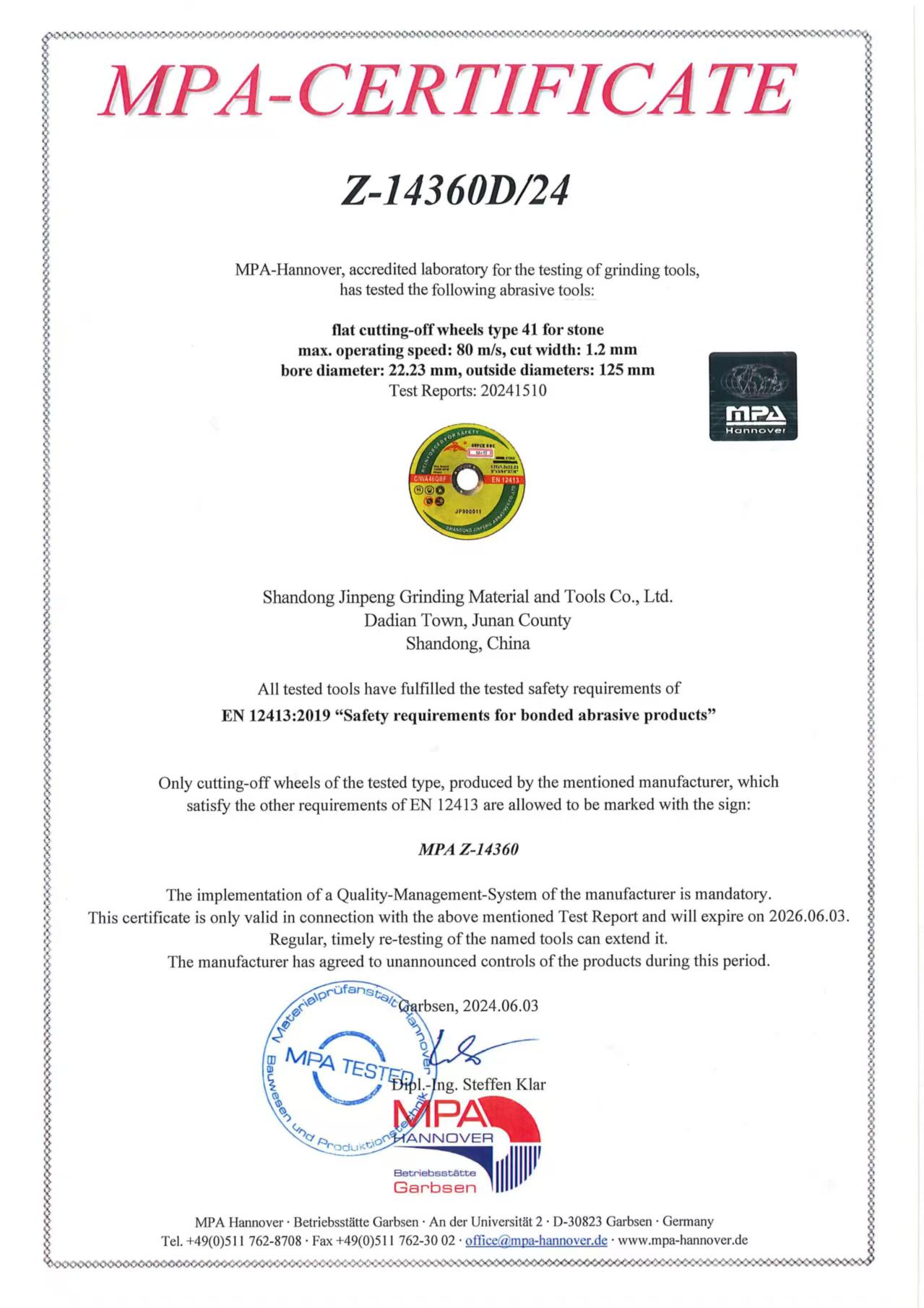 Shandong Jinpeng abrasive tools Co., Ltd.established in 2002,is a professional company engaged in developing of resin bonded grinding wheel